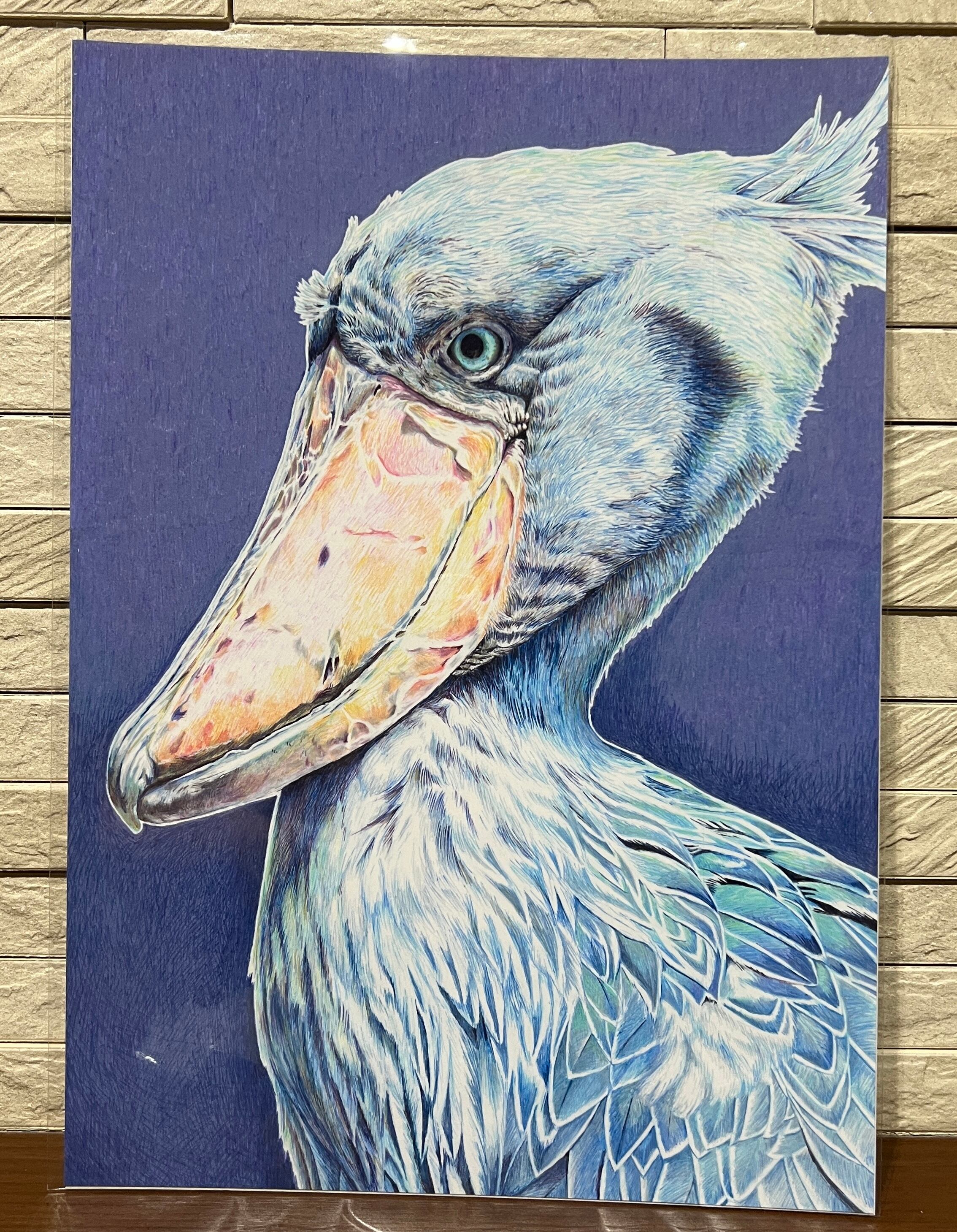 カラーボールペンで描かれたハシビロコウのA4サイズのポスター(複製)です。